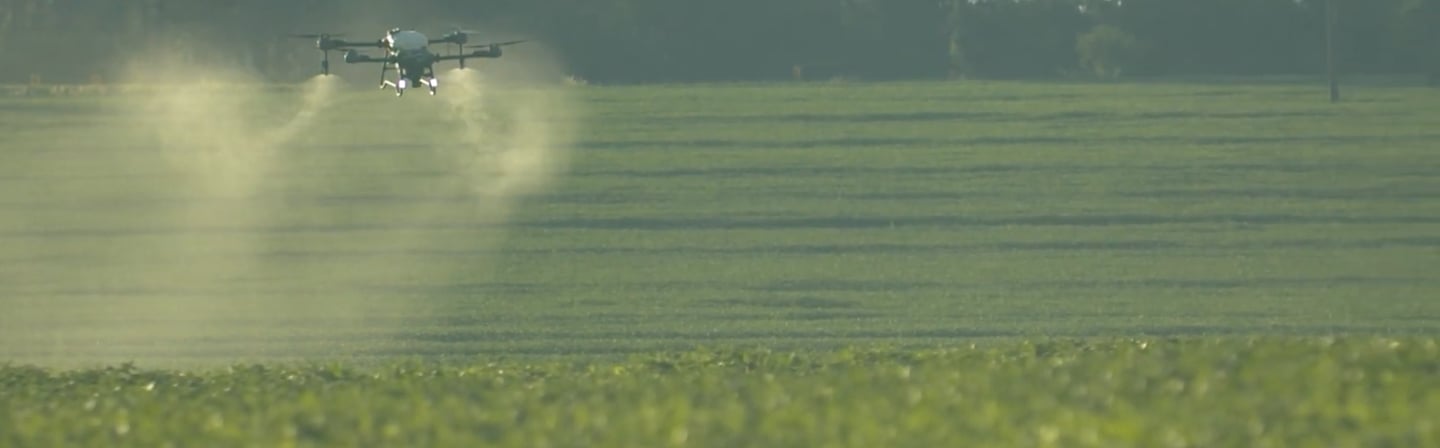 Veja o Drone King 100 operando na prática em uma pulverização real de amendoim